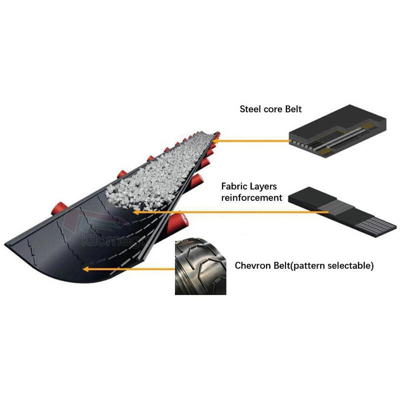 Chevron patterned conveyor belts represent a specialized category of bulk handling equipment, meticulously engineered to address the inherent limitations of conventional flat belts in steep-incline conveying scenarios. By integrating strategically designed protrusions onto the belt surface, these systems fundamentally overcome the persistent issues of material rollback and slippage, thereby enabling reliable transportation at angles previously deemed unachievable with standard conveyor systems. The operational excellence of chevron belts stems from their sophisticated structural composition, which harmonizes multiple functional layers into a cohesive, high-performance unit.